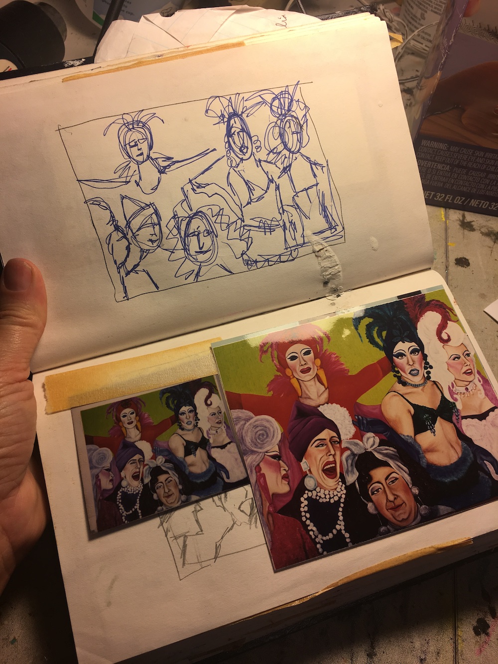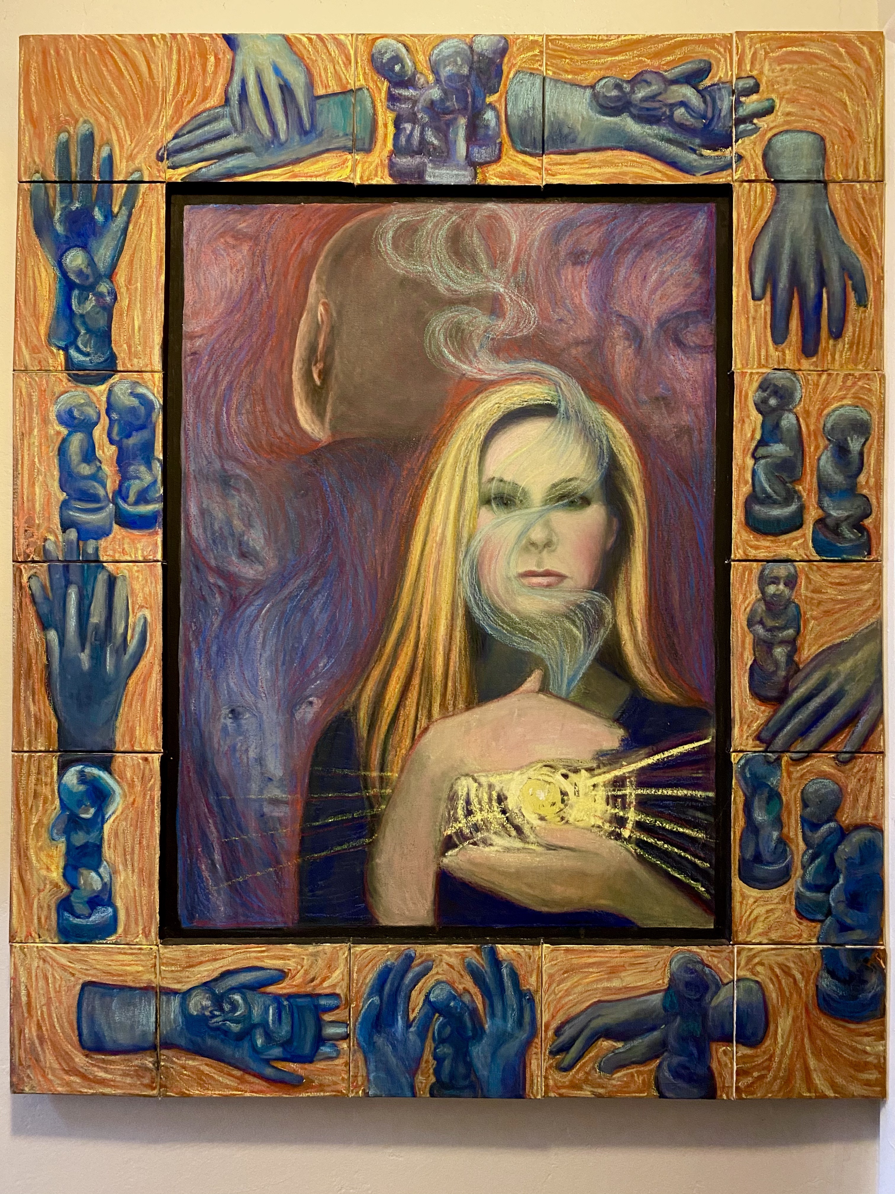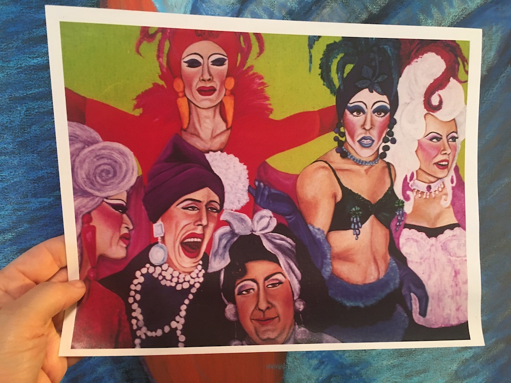 I created this painting about 26 years go, because I was so inspired by an amazing emotionally connected experience with humankind… 1994 Halloween in Oak Cliff, Texas. My friend Tony created a performance art tribute to “Pricilla Queen of the Desert.” We were 2 biological woman and 4 biological men dressed in drag having a super fun time celebrating life, art, and friendship. It was of the most absolutely fantabulous nights of my life! Sadly, I don’t have a better copy of the piece. I traded the painting in exchange for hair color/cuts with my friend Tony.