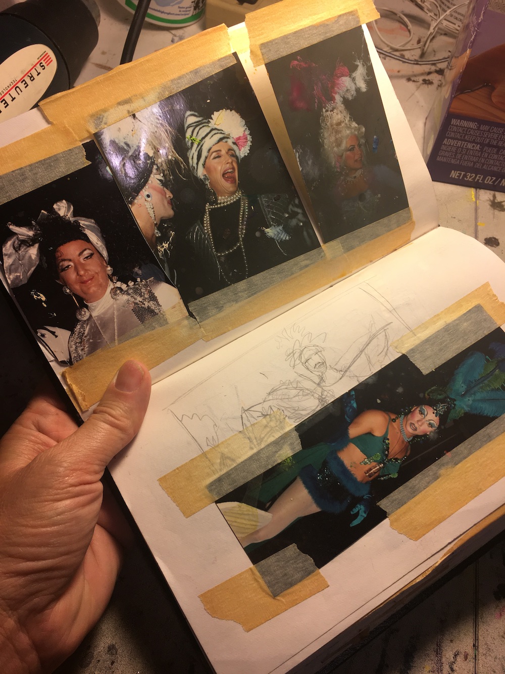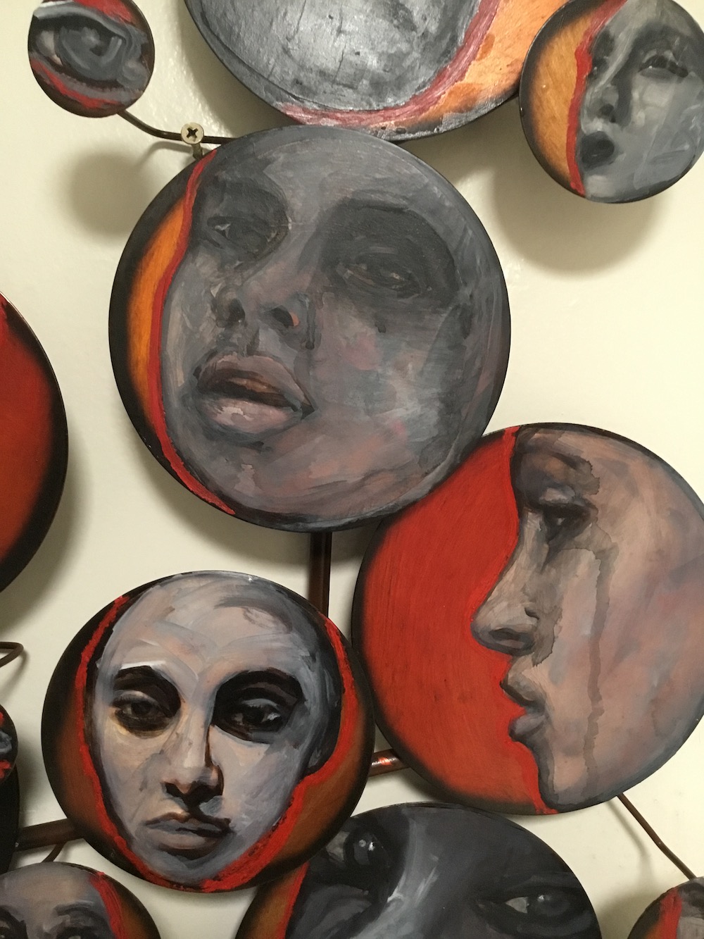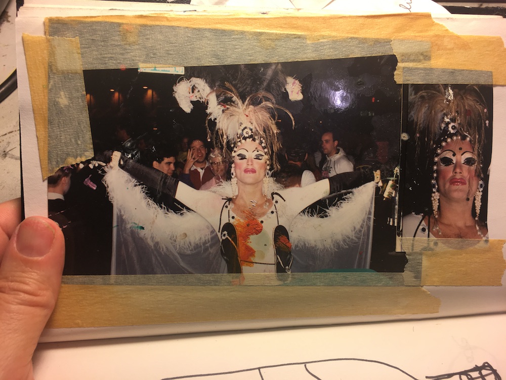 I created this painting about 26 years go, because I was so inspired by an amazing emotionally connected experience with humankind… 1994 Halloween in Oak Cliff, Texas. My friend Tony created a performance art tribute to “Pricilla Queen of the Desert.” We were 2 biological woman and 4 biological men dressed in drag having a super fun time celebrating life, art, and friendship. It was of the most absolutely fantabulous nights of my life! Sadly, I don’t have a better copy of the piece. I traded the painting in exchange for hair color/cuts with my friend Tony.