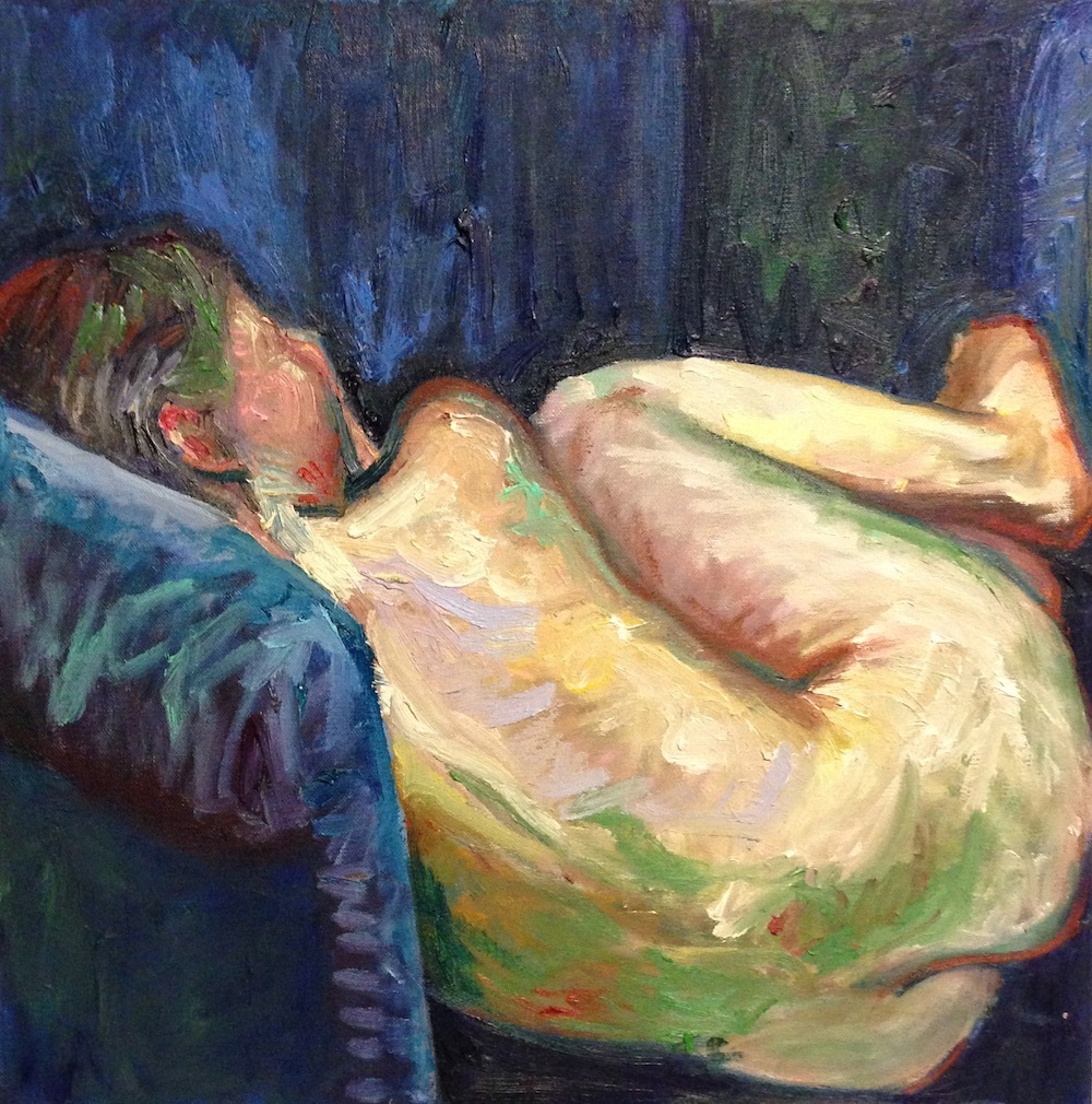 Late Show was juried into the Tuxedo Show at Art on 30th. It used to be titled, “Kill Your TV,” you know, like the bumper sticker? Remember, back in the day, when sitting close and watching TV was considered a bad thing? Now sitting in front of a screen all day is a way of life! It is how we communicate with loved ones, go to school and work, attend religious services, etc….This is a 48 x 36 polyptych painted entirely in about 3 hours time, with a 3” flat brush, black and Payne’s gray acrylic paint only. I added a little white highlight afterwards – but essentially, where you see white, it’s just the canvas.