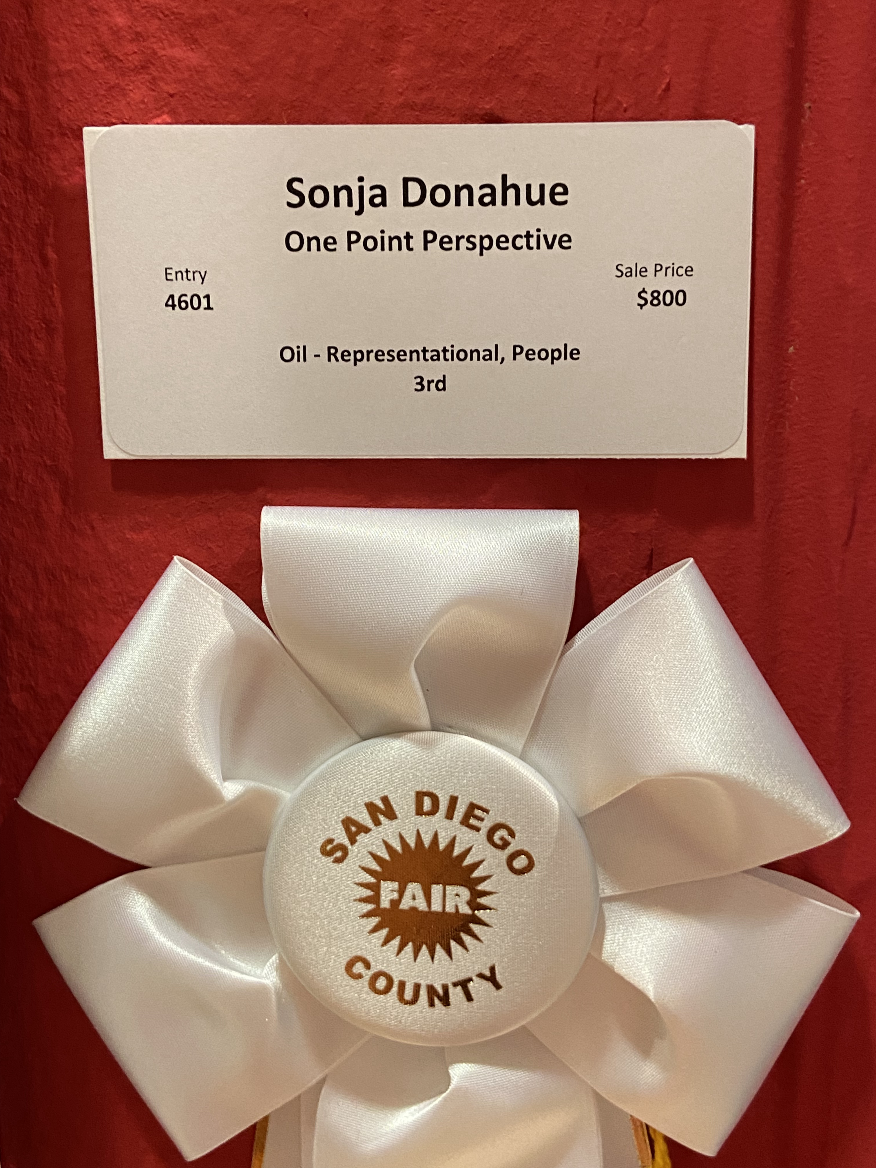 Three of my paintings were selected to be exhibited at the 2022 Del Mar Fair and I also received two 3rd Place Ribbons and Prize Money. Life is Good!