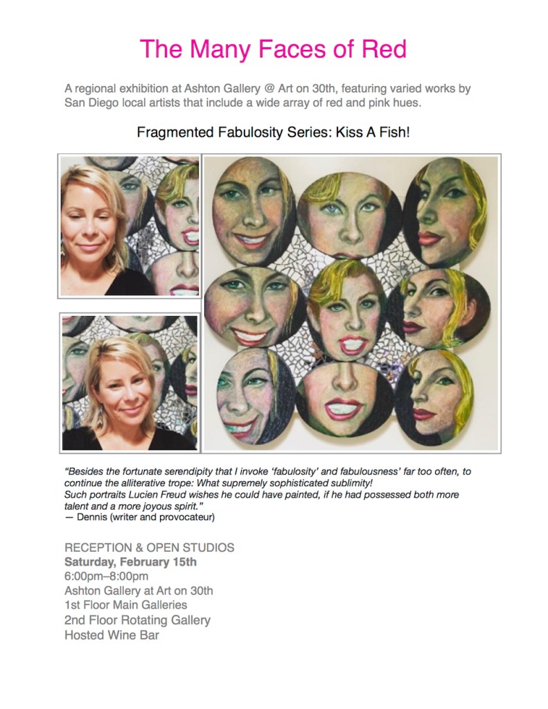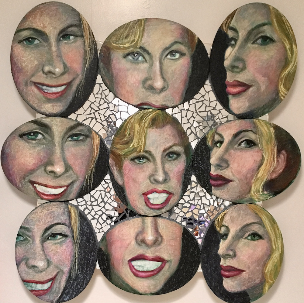I constructed this mosaic mirrored painting based on my A Girl For All Seasons calendar, in order to actively engage the viewer. While looking at this piece, the viewer not only sees the art work, but also sees their own self- image reflected back, therefor, in essence, becoming part of the painting. Perhaps the viewer will contemplate what it means to be “A Girl For All Seasons”? This piece is beyond “Pin Up Girl” ideal/ objectification malarkey, rather, it is about what I consider to be the true meaning of “A Girl For All Seasons”… Can you rise to the occasion and be your best, no matter what the circumstances? Do you engage with people and really hear their stories? Do you feel connection and empathy? Are you a spring chicken even though your “spring has sprung”? What do you do over the ‘winter of our (your) discontent’? Can you pull it together during the off season, open season, party season, swimsuit season, giving season, hurricane season, high season, IN season, and for everything that there is a season …?